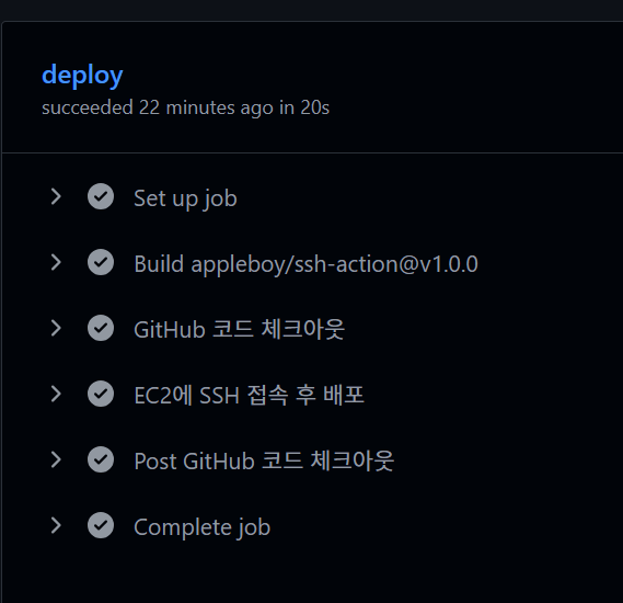 - name: EC2에 SSH 접속 후 배포