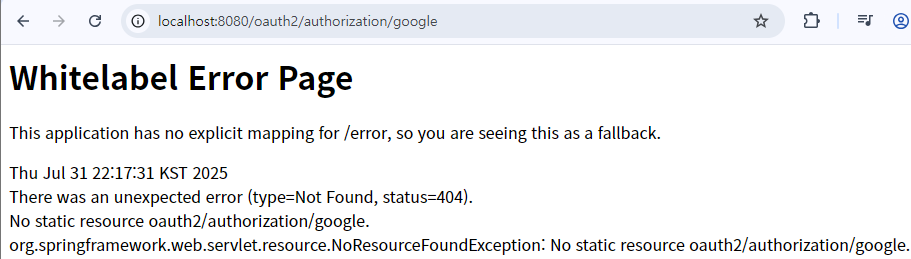 이후 서버를 실행시키고, 승인된 리디렉션 url로 이동하면