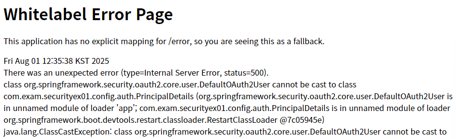 이렇게 로그인을 진행한다. 만일 그냥 기본 로그인을 진행하면, 이때 getPrincipal의 return 타입은 object이다.