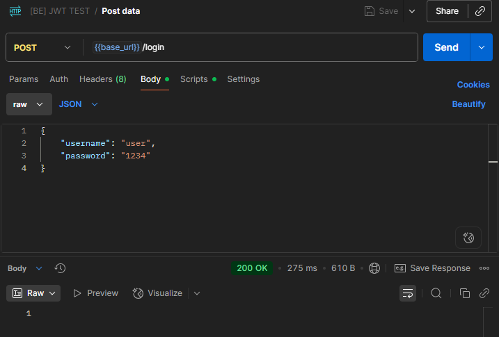 지금 방식은 정상이면, 세션 ID도 안만들고 쿠키에 저장도 안한다. JWT 토큰을 생성하고 Client에게 이걸 응답한다. 이후 서버는 JWT가 유효한지 판단을 필터를 통해서 한다 (이제 이거 해보자)
