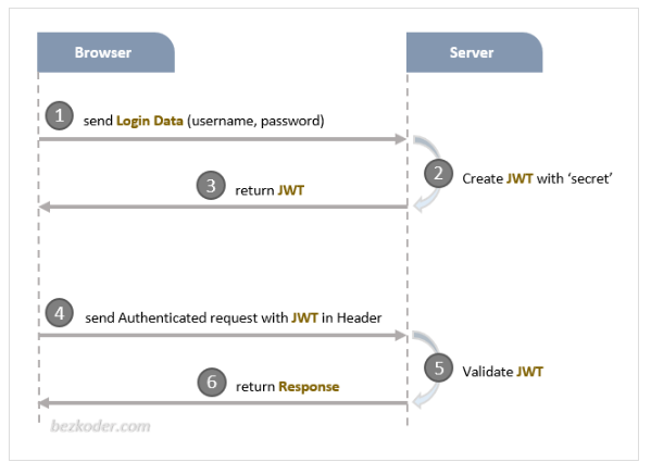 client가 서버에 아이디, 비밀번호를 보낸다. 서버는 인증이 완료되면 JWT를 만들어준다. client가 로컬 스토리지에 저장한다. 이후 client가 JWT를 서버에게 주면, 서버가 검증을 한다. 검증이 완료되면 payload에 있는 user 정보로 db에서 찾은 후 보내준다.