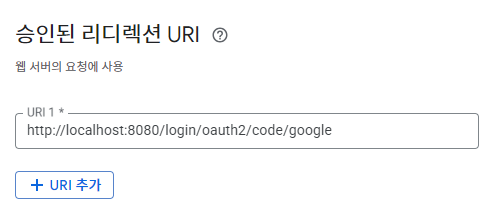 관련 코드 깃허브https://github.com/lhoju0158/securityOAuth2.00. OAuth란 1. 구글 로그인 준비- 구글 api console에 들어간다- 새로운 프로젝트 생성- OAuth 동의화면 - 프로젝트 구성 들어가서 설정 완료하기- 개요 - OAuth 클라이언트 ID 만들기 들어가서 설정 완료하기이 중 승인된 리디릭션 url은 다음과 같은 의미이다. 로컬 로그인이 완료 되면 인증이 되었다는 코드를 돌려준다.서버는 이 코드를 다시 받아서 해당 코드를 이용해 액세스 토큰을 요청한다.액세스 토큰을 이용해 서버가 사용자 대신 구글 서버에 존재하는 사용자의 개인 정보에 접근할 수 있는 권한이 생긴다. 승인된 리디랙션 url은 코드를 잡는 url이다. 위 주소는 authclient..